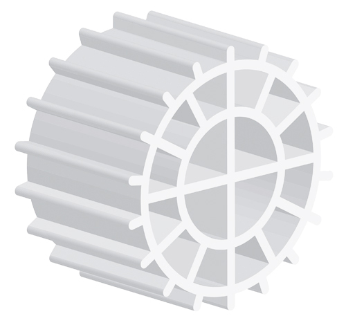 The shape of K+Media optimises the amount of “quiet zones” within the media where a stable bio-film can develop. Whilst K+Media keeps the integral profile of K1 Media at its core, there is an extra layer of cells and fins around the outside of each piece that enable microscopic organisms such as Rotifers and Vorticella to thrive. This is an additional benefit as competitor media do not have such “quiet zones” that would allow these higher lifeforms of filter feeders to develop. The bacteria and organisms that form within the bio-film ensure the media delivers optimum levels of biological filtration in the moving bed, which has been proven filtration technology for many years in the fishkeeping hobby.